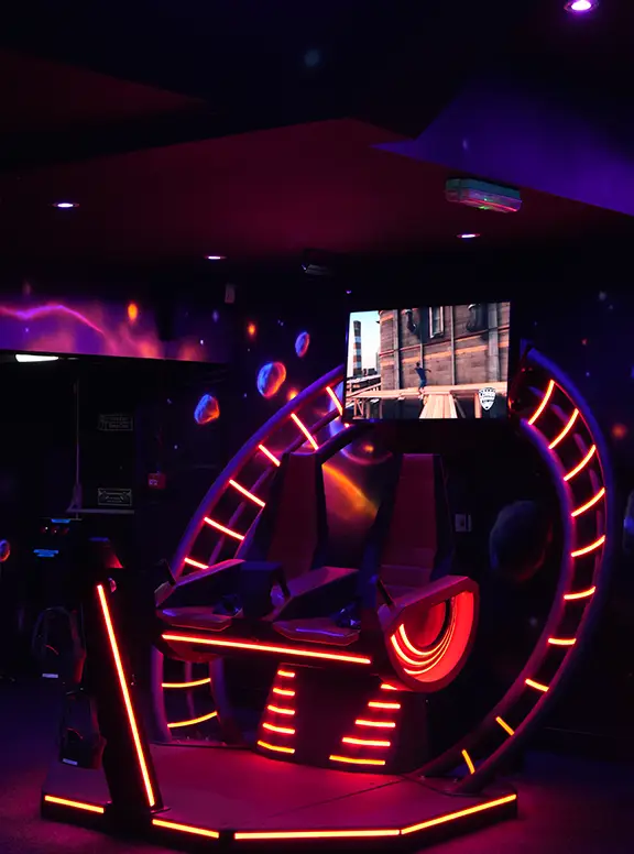 You’ll be able to choose from one of the many breath-taking movie experiences including an accelerated jetpack to fly through our VR town, our thrilling rollercoaster ride, take a slide in our virtual aquapark or a walk through our deadly dark tower and many more thrilling movie experiences!